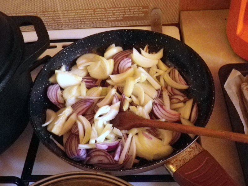 Az összes fűszert és a fokhagymát mozsárban összetörtem, összekevertem a joghurttal és az olajjal és a ketté vágott combokat beleforgattam. Letakarva 3 órára hűtőbe tettem pácolódni. Majd kivettem, a tagine-ba halmoztam, rádobáltam a sózott citrom héját néhány darabra vágva (a belsejére nincs szükség, azt el kell dobni), és négy szép nagy fügét, amit frissen szedtem a kertben.